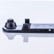 -The front camera unit is also a touchscreen display, which shows a real-time video feed from the front, rear, or both cameras at once. When the screen is off, it functions as a regular mirror