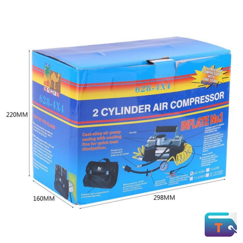 Power up your inflation tasks with the CMGU 628.4X4 2-cylinder air compressor. Engineered for performance and reliability, it’s ideal for off-road vehicles, tire maintenance, and emergency roadside use.