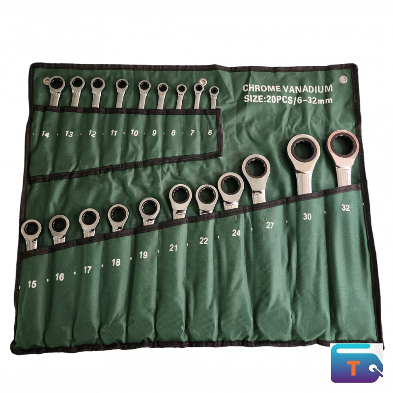 20-Piece Chrome Vanadium Combination Wrench Set – 6mm to 32mm with Roll-Up Tool Pouch