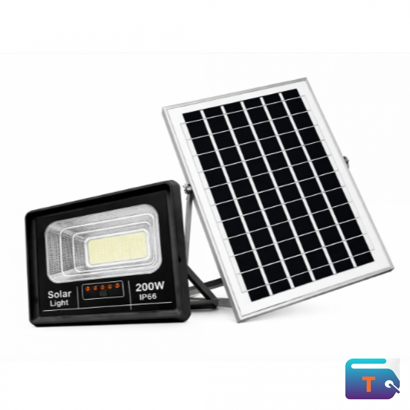 Light up large outdoor areas with this powerful 200W solar-powered LED floodlight system. Engineered for durability and energy efficiency, it features a wide-beam LED array and a robust solar panel for reliable, off-grid illumination in all weather conditions.