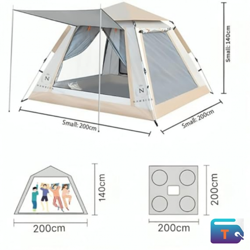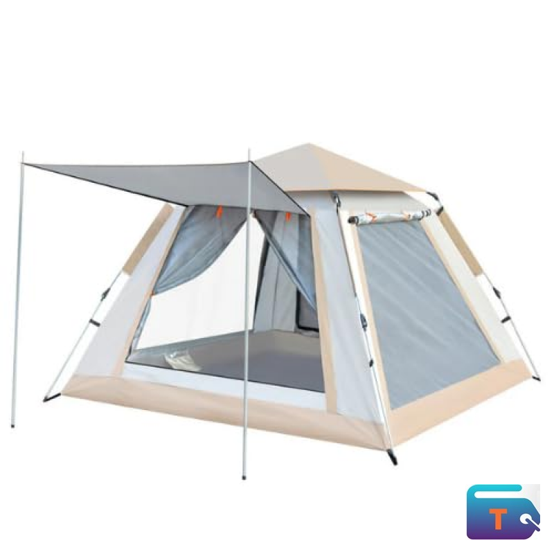 Introducing the adult's cabin tent for 3 to 4 people with waterproof Oxford, a two-layered tent with no compartment that represents excellent value, ideal for couples or small families.? The cabin tent is full of features including a double-layered roof, and all-around windows on every side for the perfect view. The tent is designed with mesh windows on four sides, which greatly improved its ventilation ability, effectively decreasing humidity and natural condensation. In addition, the high-density mesh windows can help protect you from mosquito bites. The rainproof design ensures that you stay dry and comfortable no matter the weather.? A lighter-colored roof helps reflect heat to help maintain a consistently pleasant internal temperature. The breathable inner tent provides a luxurious sleeping area (210 x 210 x 140 cm), designed to accommodate 3 to 4 average size adults, making it perfect for families or small groups.? This cabin tent is made from high-quality Oxford cloth designed to withstand the rigors of outdoor adventures. It's designed for abrasion resistance, drop resistance, and pressure resistance. The outer layer and groundsheet of the tent are manufactured from a material with a waterproof rate of 2000 to 3000 mm, offering reliable protection regardless of the weather. Durable buckles connecting the tent to the ground make sure that the tent is stable even in gusty conditions. With its high-technology quick automatic installation, this instant cabin tent can be set up easily, with no need for complicated assembly. You can simply lift the center of the pole hub lightly, and the tent will expand automatically. Similarly, you just need to press down on the pole hub to close it. It will be an ideal choice for campers who want to spend more time enjoying the great outdoors and less time setting up camp.? The package includes a tent with ground pegs, guy ropes, adjustable buckles, and curtain support poles.