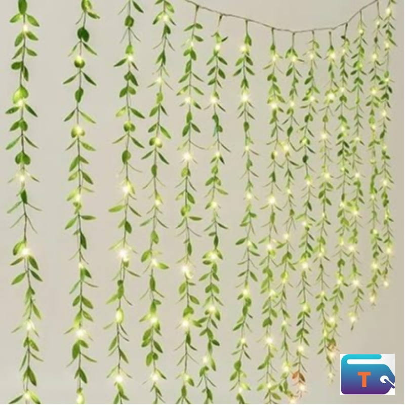 Proper Size when fully expanded, this greenery curtain lights measure Length 5m. Lighted Artificial Willow Vines Featuring natural looking willow vines with led lights, this greenery design is perfect for adding a stylish fresh air to your decorative project without taking up table space. Superior Material High quality naturalistic look, very similar to real vines. Close to nature, widely use, durable for years of use. 8 flashing modes with 220V Plug-in. 8 lighting modes, flash and steady on, easy for home decoration. Versatile You can hang these green vines lights on the wall, doors, window, wedding backdrop, party photo background and anywhere as you like to enjoy with our lighted artificial hanging ivy garland. Perfect for bedrooms, gardens, parties, festivals, and more, offering a versatile solution for all your decorating needs.
