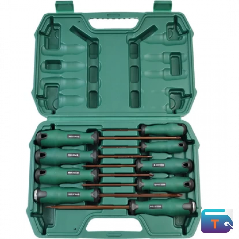 Tackle household and workshop tasks with this versatile 9-piece screwdriver set, neatly packed in a durable green carry case. Designed for comfort and precision, it includes a range of flathead and Phillips drivers for everyday use.
