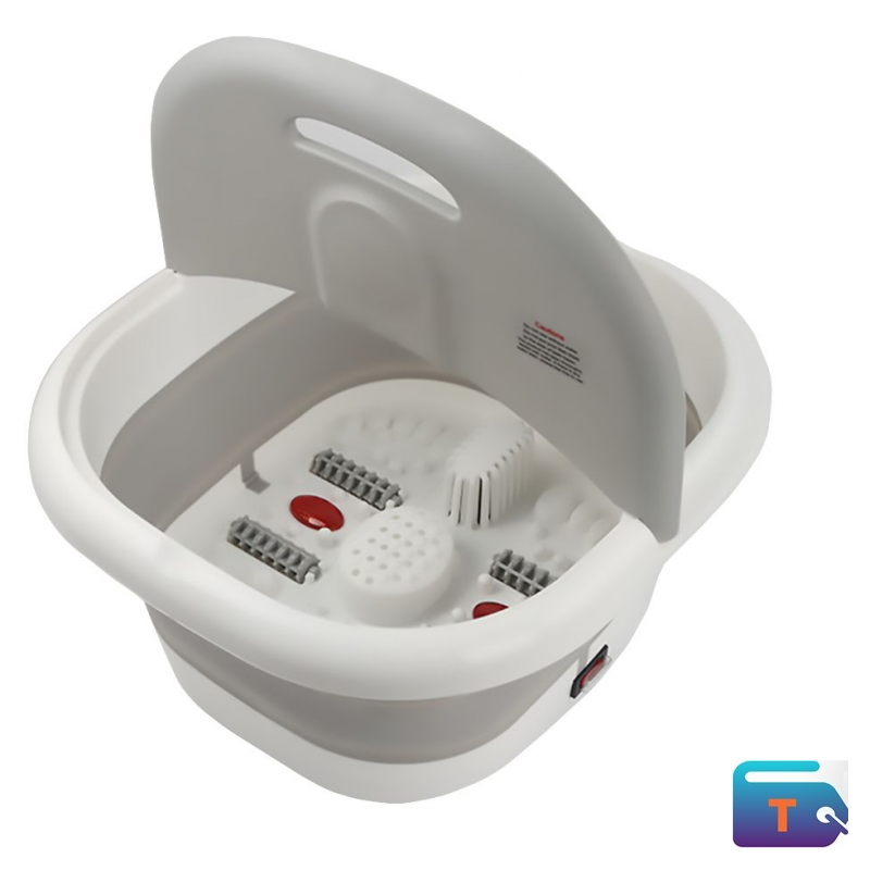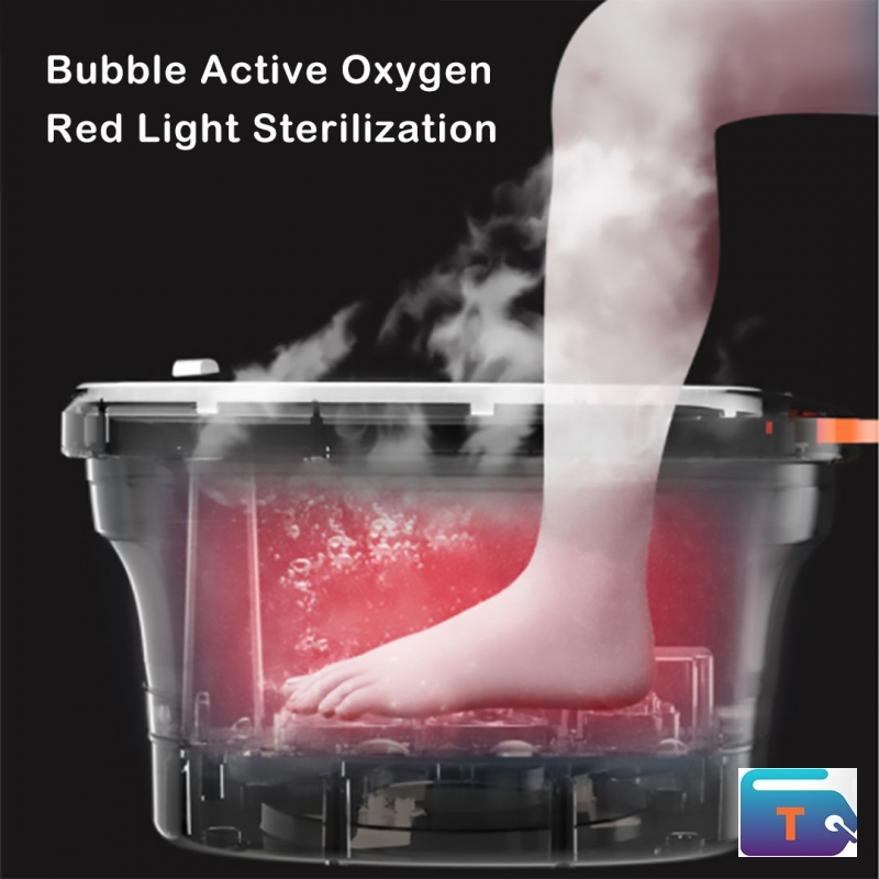 All-in-One Foot spa bath Adopts hydroelectric separation for your safety, integrates PTC heating system fast heat up the water with lid, and massage rollers, bubble, red light, material box, warm water foot spa for you to relax your feet.