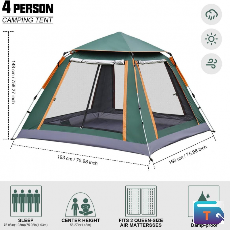Experience outdoor comfort and protection with this spacious, all-weather camping tent. Built for family or group adventures, it offers: