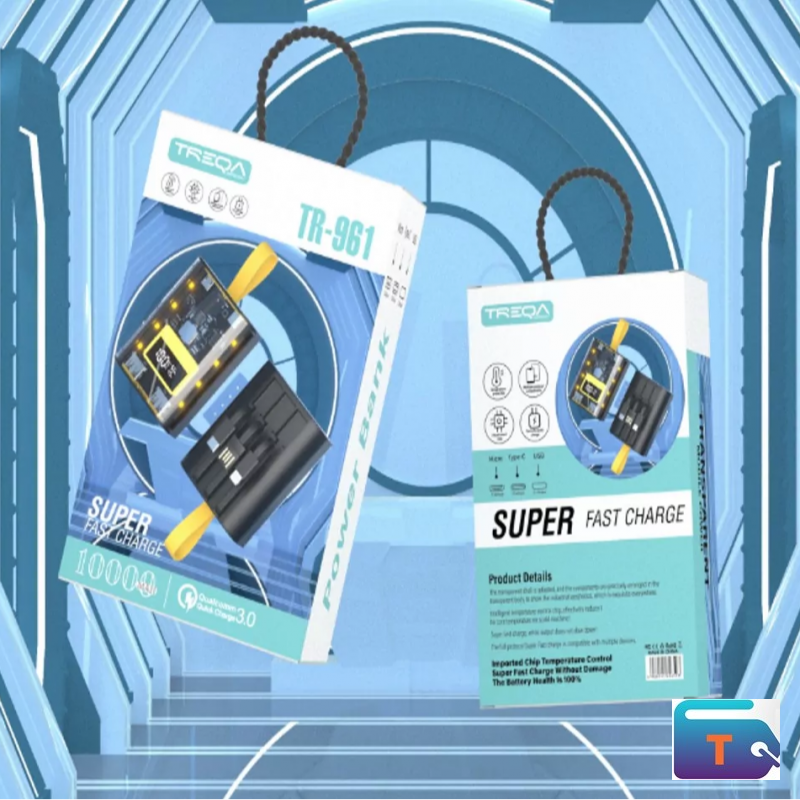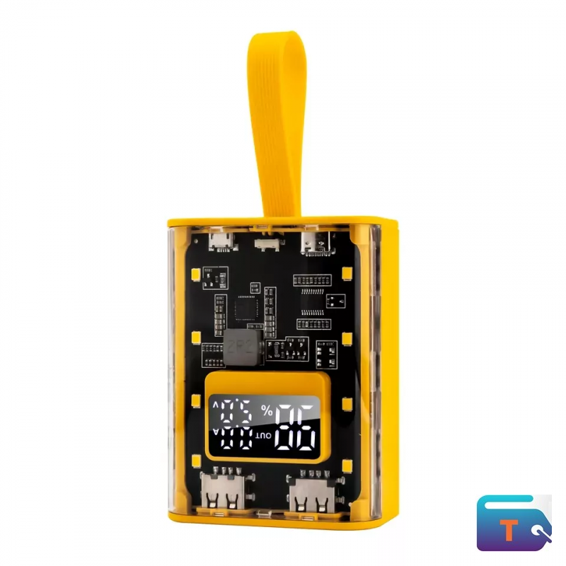 -Transparent charging treasure with built in 3 USB cables Type C , IOS And Male USB