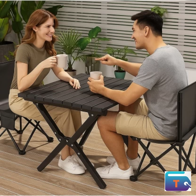 Product Overview: This sleek black folding table combines portability with durability. Featuring a slatted top and cross-legged metal frame, it’s designed for outdoor use, making it perfect for camping, picnics, or temporary setups.