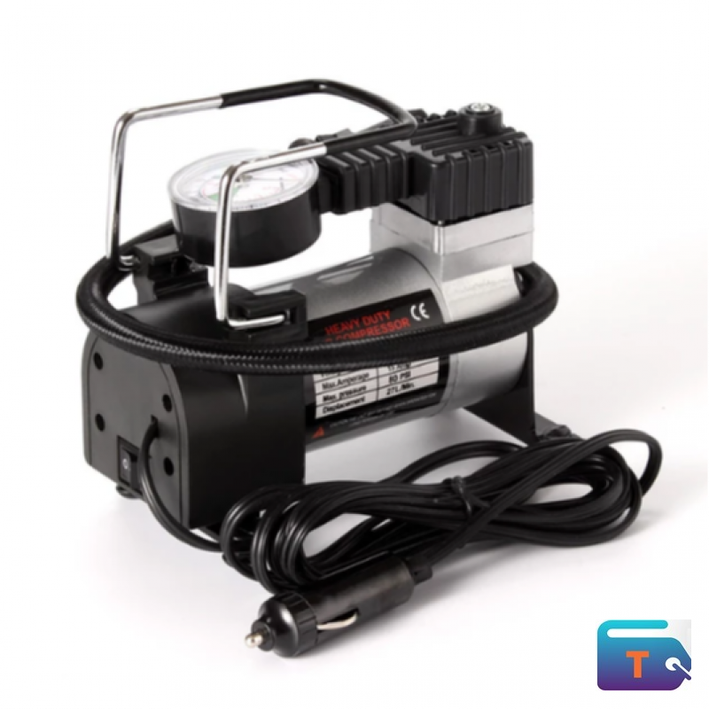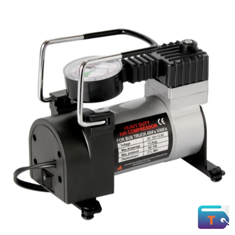 – This portable compressor has a small electric motor that compresses the air in a small attached cylinder tank
