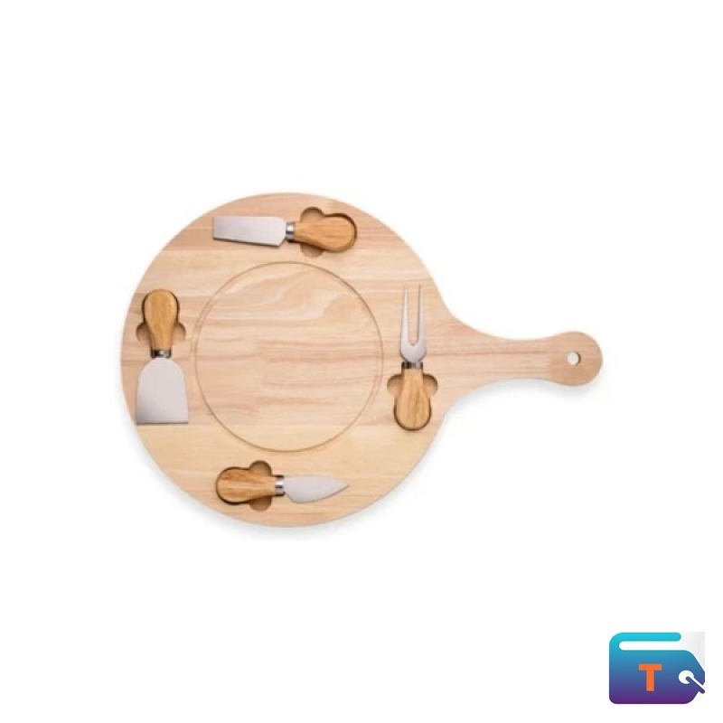 Serve cheese with elegance using this all-in-one wooden board set, designed for slicing, spreading, and entertaining.