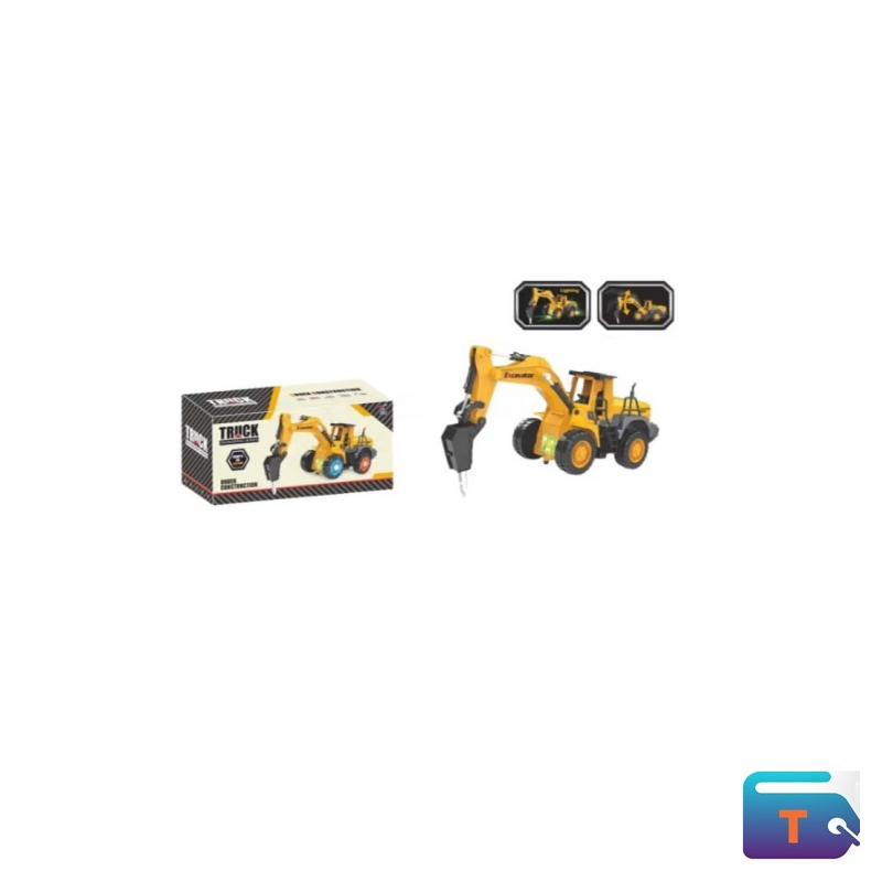 This is a yellow toy excavator truck that is part of a "Truck Engineering Series". It is described as a construction vehicle toy with lights and music effects. The toy is battery-operated and features a moveable excavator arm. It has dimensions of 14.9 cm in height and 10.5 cm in depth. The toy is for children age range of 2 to 7 years old.
