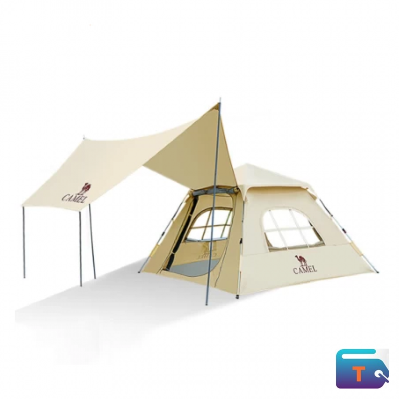 Experience premium outdoor comfort with the Camel Crown cabin tent, designed to bring both style and functionality to your camping adventures. Featuring a spacious interior with tall walls and large mesh windows, this tent provides excellent ventilation while keeping insects out. The attached awning offers extended protection from sun and rain, creating a versatile outdoor living space for relaxing or cooking. Crafted from durable, weather-resistant materials and supported by sturdy poles, this tent is built to withstand changing weather conditions. Ideal for family camping trips, festivals, or weekend getaways, the Camel Crown tent delivers reliable shelter with a touch of elegance.