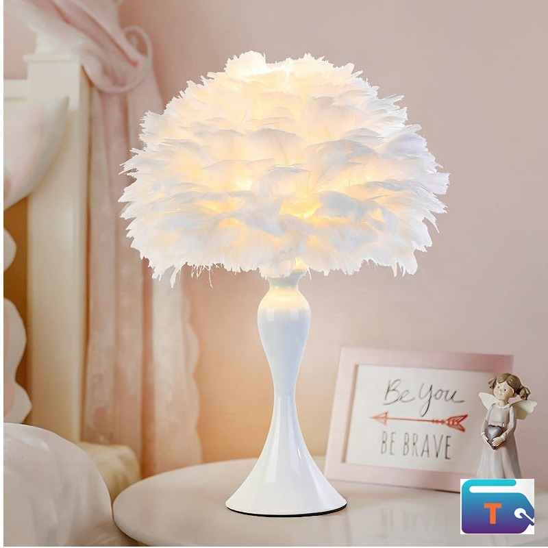 Feathered lampshade — soft white feathers create a luxurious and diffused glow