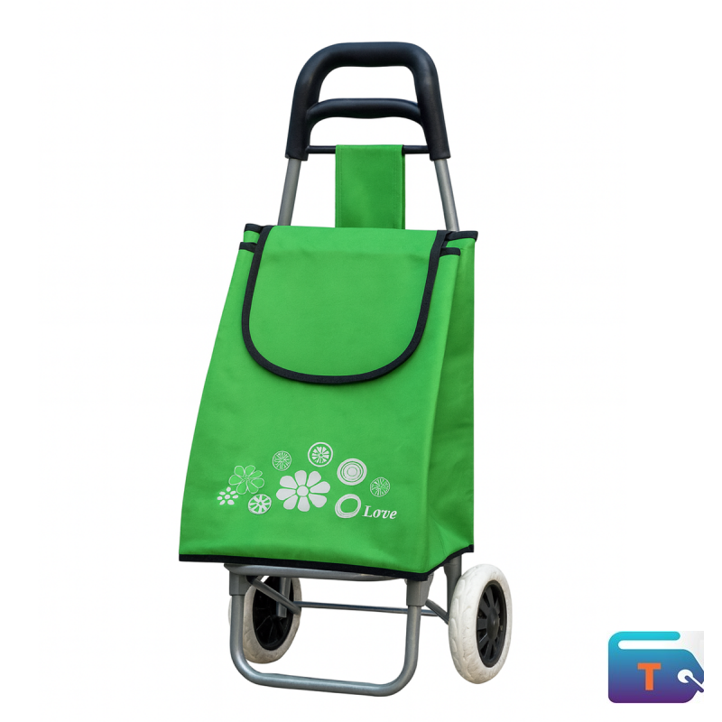 Make your shopping trips easier and more stylish with this foldable shopping trolley, featuring a charming floral design and the word "Love” printed on the front.