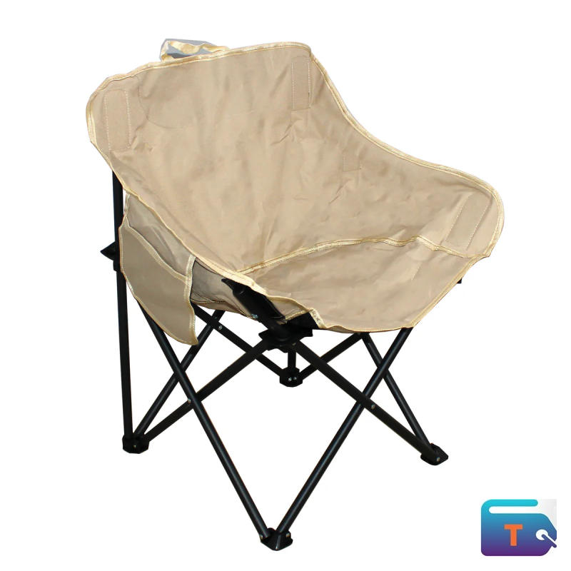 Product Overview: This bucket-style folding chair offers comfort and portability in one sleek design. With a durable beige fabric seat and a sturdy black metal frame, it’s perfect for outdoor adventures, events, or casual seating at home.