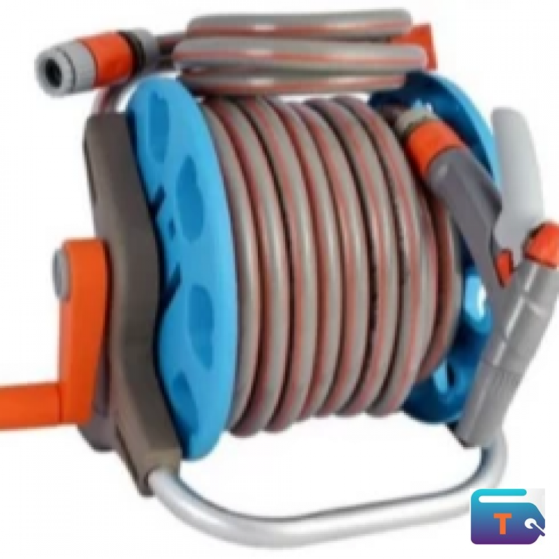 Keep your garden neat and your watering effortless with this Garden Hose Reel, designed for convenience, durability, and tangle-free storage. Featuring a sturdy blue and gray frame with vibrant orange accents, it includes a smooth-winding handle, coiled hose, and multi-function spray nozzle for versatile outdoor use. Whether you're watering plants, cleaning patios, or rinsing tools, this reel system ensures easy handling and quick access—making garden maintenance cleaner, faster, and more enjoyable.