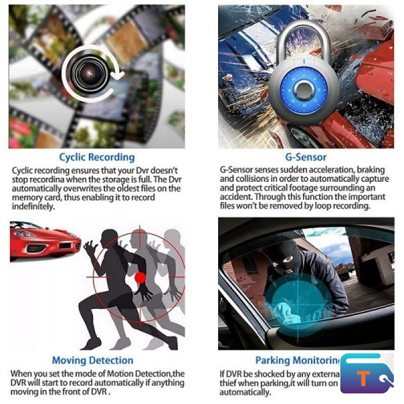 -Your safety is our priority, the built-in G-Sensor with adjustable sensitivity detects sudden collisions and instantly safeguards the relevant footage by saving it to a dedicated SOS file. This prevents crucial evidence from being overwritten