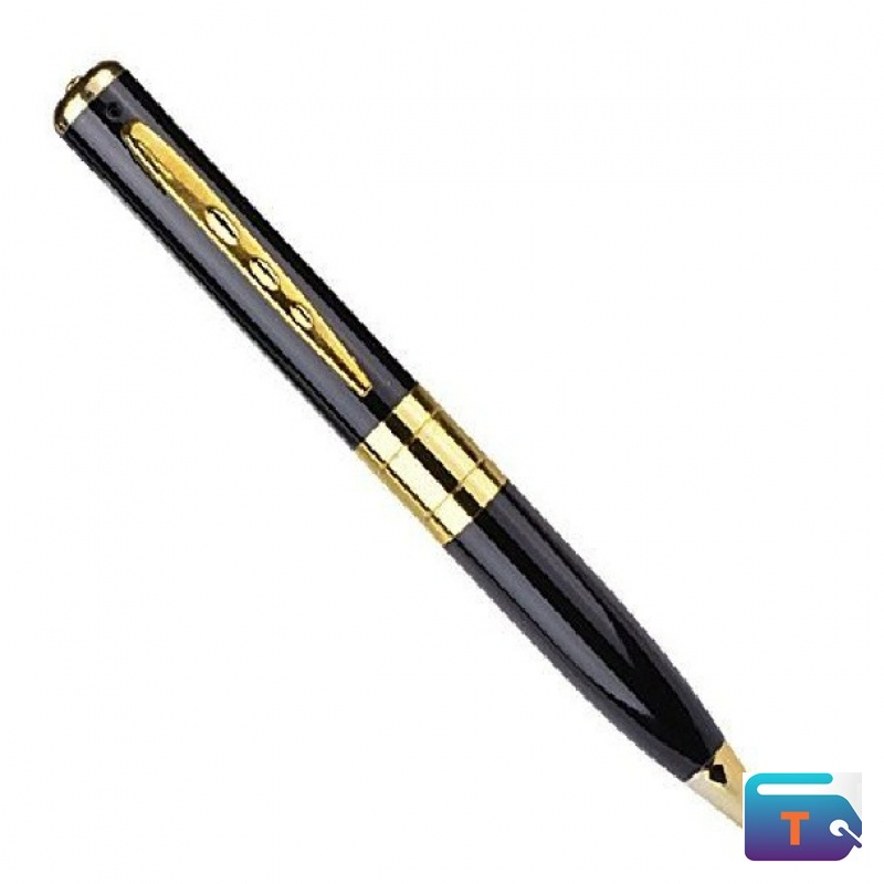 A covert pen camera that records Full HD 1080p video and audio, stores footage locally (typical retail bundles include up to 32 GB capacity), and offers LAN cable connectivity for wired data transfer or remote access on compatible models.