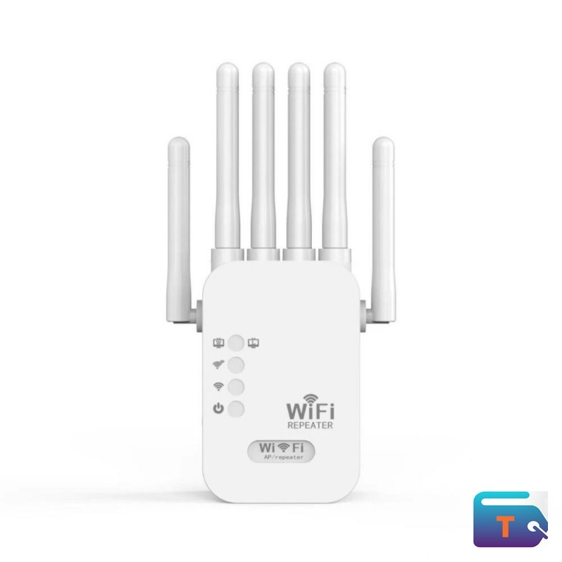 Boost your wireless coverage and eliminate dead zones with this high-power WiFi repeater. Equipped with six external antennas, it delivers stronger signal penetration and wider coverage for homes, offices, and commercial spaces. Designed for easy setup, this repeater extends your existing WiFi network to provide stable, high-speed internet in hard-to-reach areas. Ideal for streaming, gaming, and everyday browsing, it ensures reliable connectivity throughout your space.