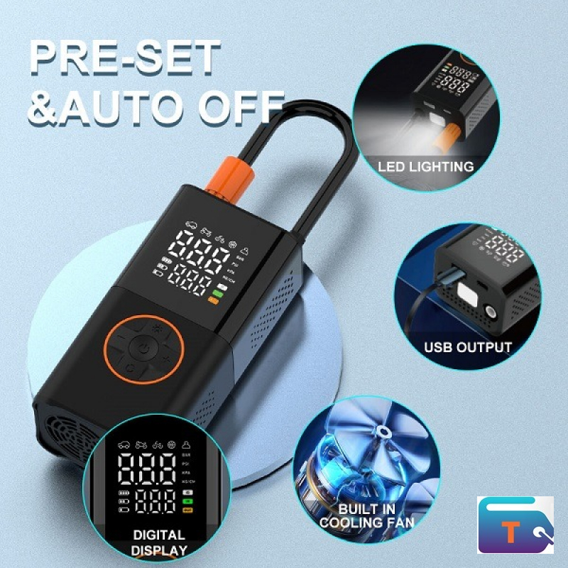 -The inflator automatically shuts off when the desired pressure is reached, preventing over-inflation and ensuring your tyres are inflated to the perfect level