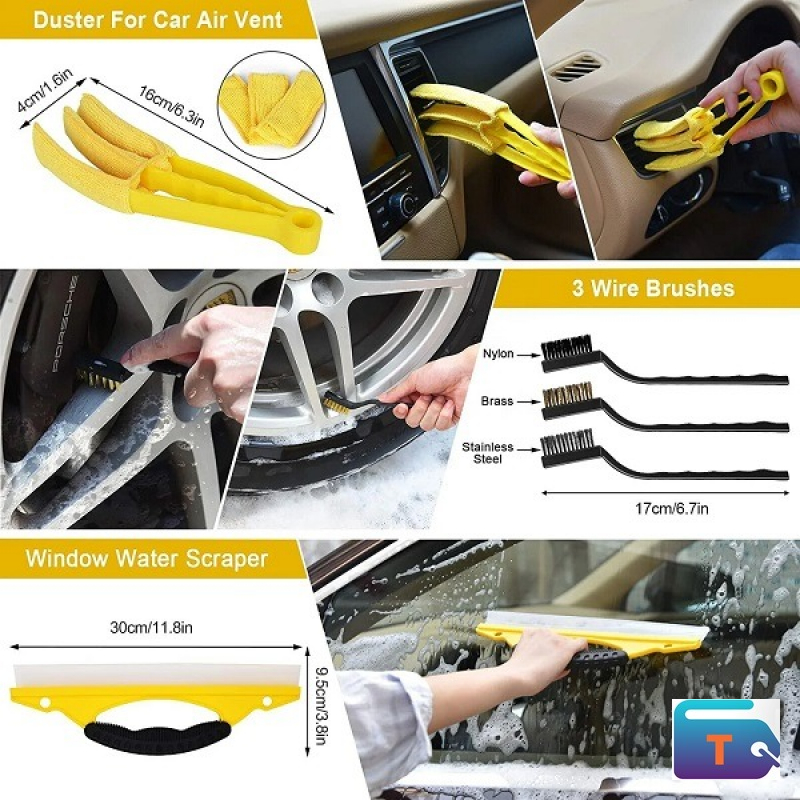 -Our car detailing Brushes come with 5 different stiffness and shapes brushes for washing automotive exterior and interior surfaces