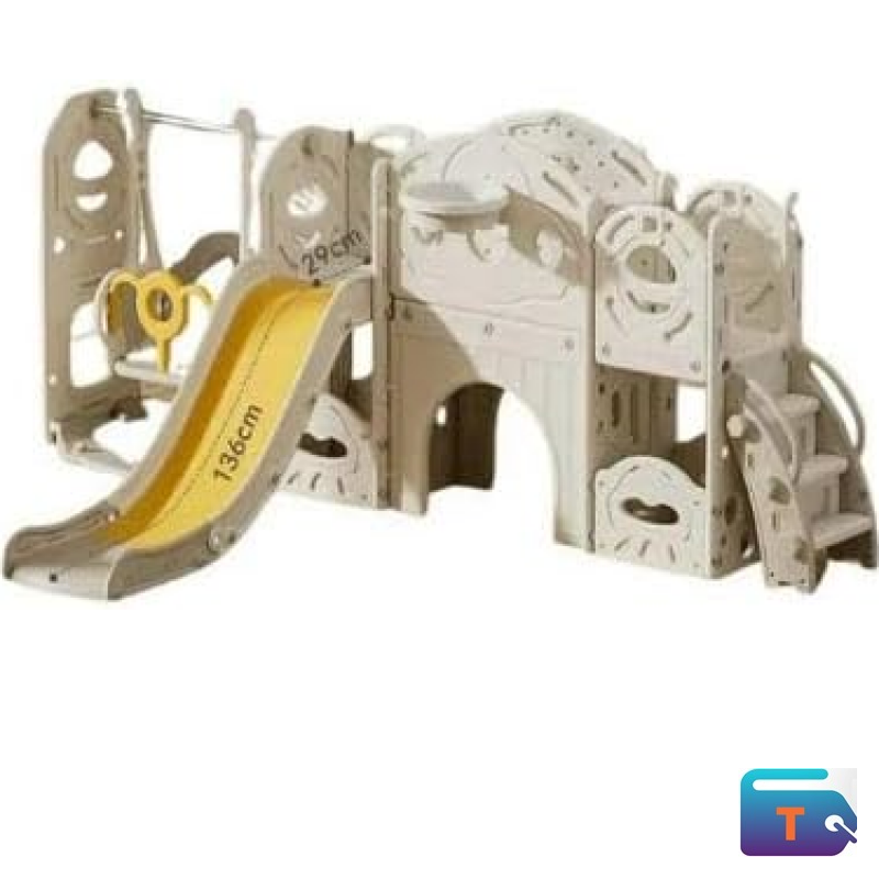 • The slide for kids indoor outdoor playset helps your baby develop motor and adventure skills while having fun. It includes a long slide, a climbe, a corridor, a toddler basketball hoop, a toy telescope, a crawling arch tunnel and a storage basket.