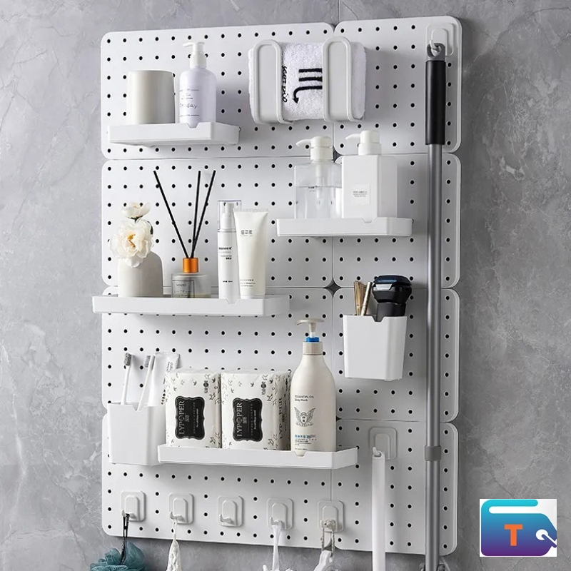 The Kitchen Pegboard Wall Organizer (Plastic) is a versatile and space-saving solution designed to keep your kitchen essentials neatly arranged. With its lightweight plastic construction and customizable pegboard design, it allows you to organize utensils, tools, and accessories in a way that suits your needs.