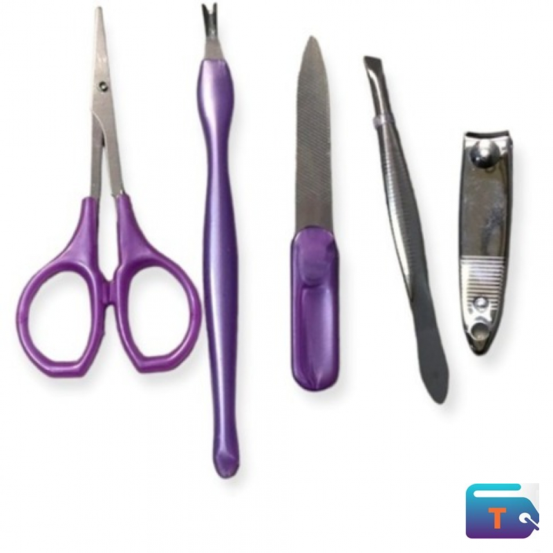 Nail clipper; nail file; claw/toe remover; small scissors; eyebrow clip/trim tool.