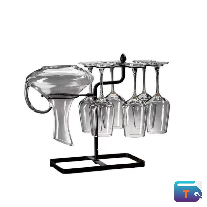 Holds one wine decanter and six glasses — ideal for post-wash drying and display
