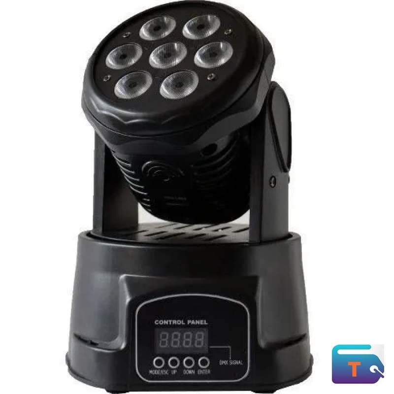 This dynamic moving head LED light is engineered for professional stage lighting, offering vibrant RGB output and multi-directional beam control. Featuring seven high-intensity LED lenses arranged in a circular pattern, it delivers sweeping effects and color transitions ideal for concerts, theater productions, and live events. The integrated digital display and control buttons allow precise programming and DMX compatibility.
