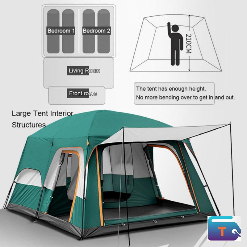Enjoy comfort, space, and practicality with this versatile camping tent designed for families and small groups. Built for outdoor adventures, this tent offers durability, ventilation, and flexible setup options for camping, hiking, fishing trips, beach outings, and backyard use.