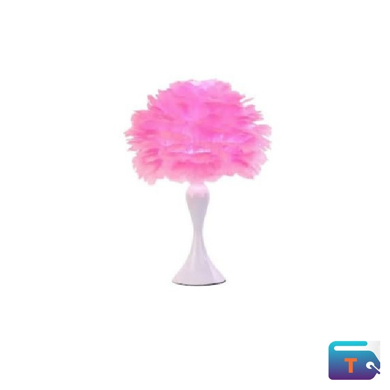 Feather-style lampshade — soft pink texture diffuses light for a warm, ambient glow