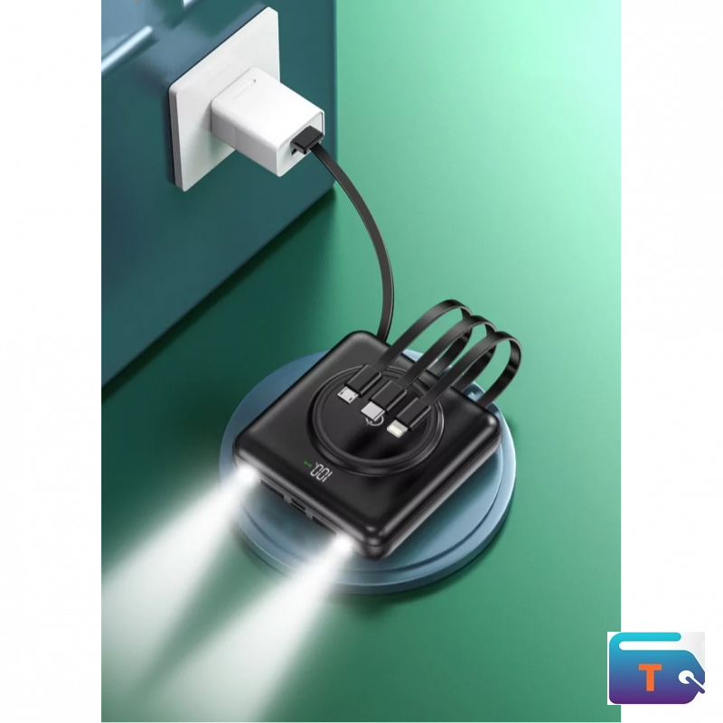 It is a built in rechargeable Li-ion battery with 4 cables and two USB Output ,it can meet various demands of digital devices