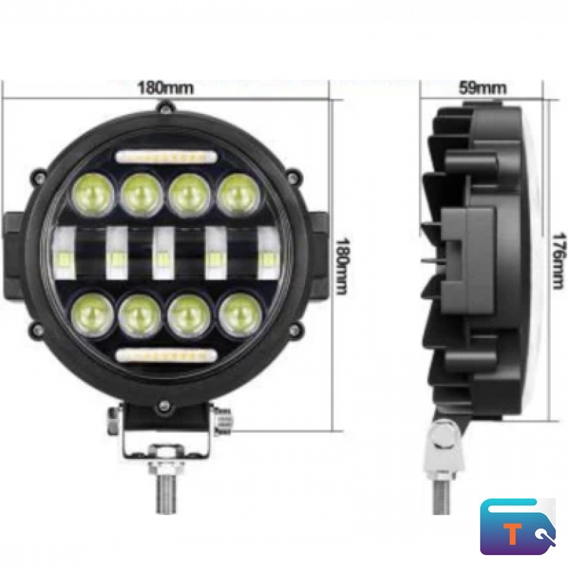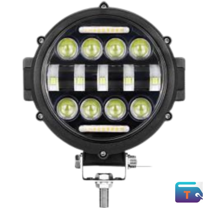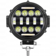 This compact round LED work light delivers powerful illumination with a 9-bulb central array and dual horizontal LED strips for enhanced brightness. Designed for rugged environments, it features a durable housing and adjustable mounting bracket for secure installation on vehicles, machinery, or outdoor structures.