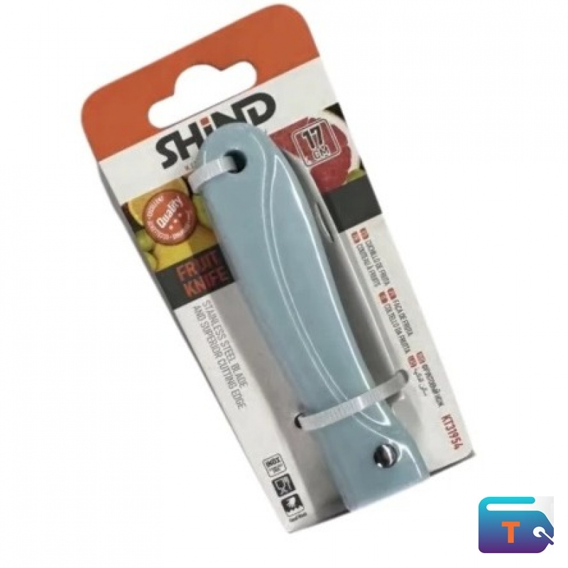 This compact fruit knife is designed for precision slicing and peeling of soft produce. Featuring a sharp stainless steel blade and a light blue ergonomic handle, it offers superior cutting performance with a comfortable grip. The included blade cover enhances safety and hygiene, making it ideal for storage or travel. Multilingual packaging supports international retail environments, while its lightweight design suits both home and professional use.