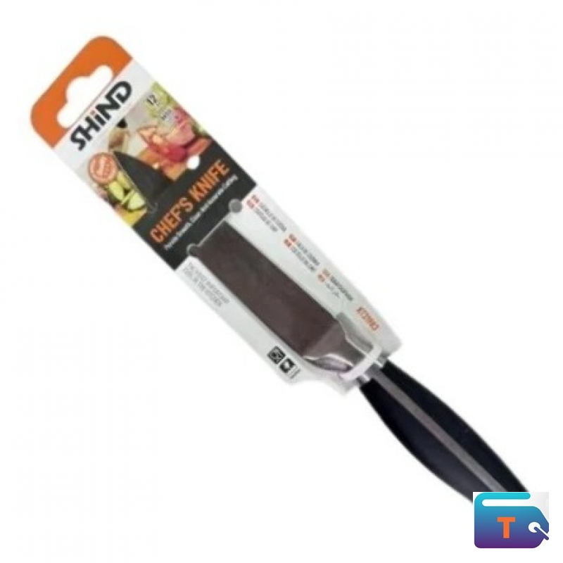 This stainless steel chefโs knife is an essential tool for slicing, dicing, chopping, and mincing. Featuring a wide blade and a contoured black handle with metallic end cap, it offers excellent balance and control for all types of food prep. Whether you're working with vegetables, meat, or herbs, this knife delivers precision and durability for everyday kitchen use.