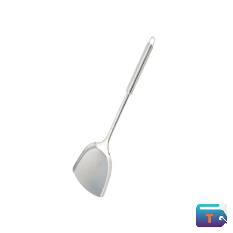 Master stir-frying and sautéing with this stainless steel wok spatula. Designed with a wide, slightly curved blade and a long handle, it offers excellent control for flipping and tossing ingredients in deep pans or woks. Ideal for high-heat cooking and everyday kitchen use.