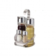 Includes 4 glass containers: 2 tall (oil/vinegar) and 2 short (salt/pepper)