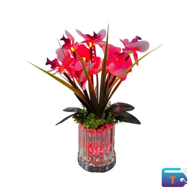Artificial orchid-like flowers — vivid pink and red petals with realistic elongated shapes