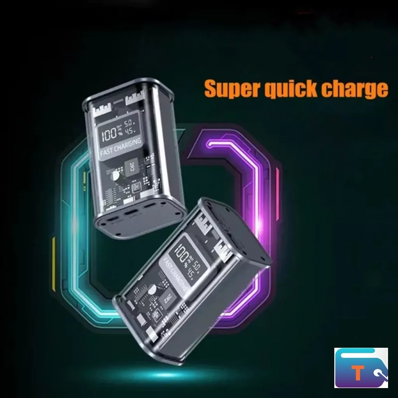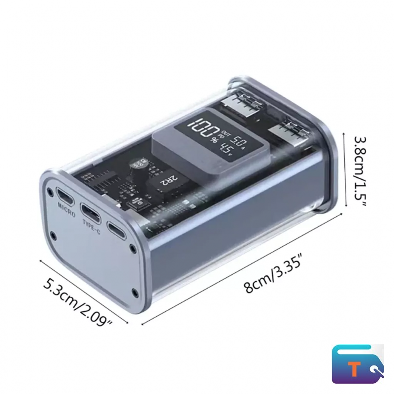 -The fully transparent design shows the precision structure inside the battery, including the equipped battery, and circuit layout, the LED digital screen will clearly display the power of the power bank, fully showing the technical aesthetics