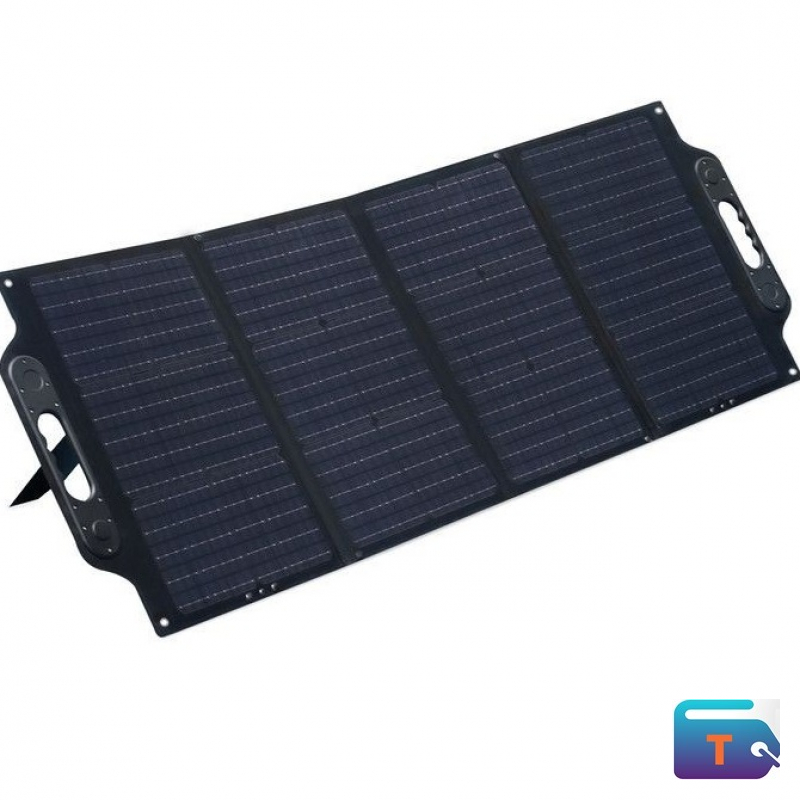 Compact, foldable 100W solar panel designed for portable off‑grid charging, emergency backup and camping use; folds into a carryable pack with a weather‑resistant casing for easy transport.