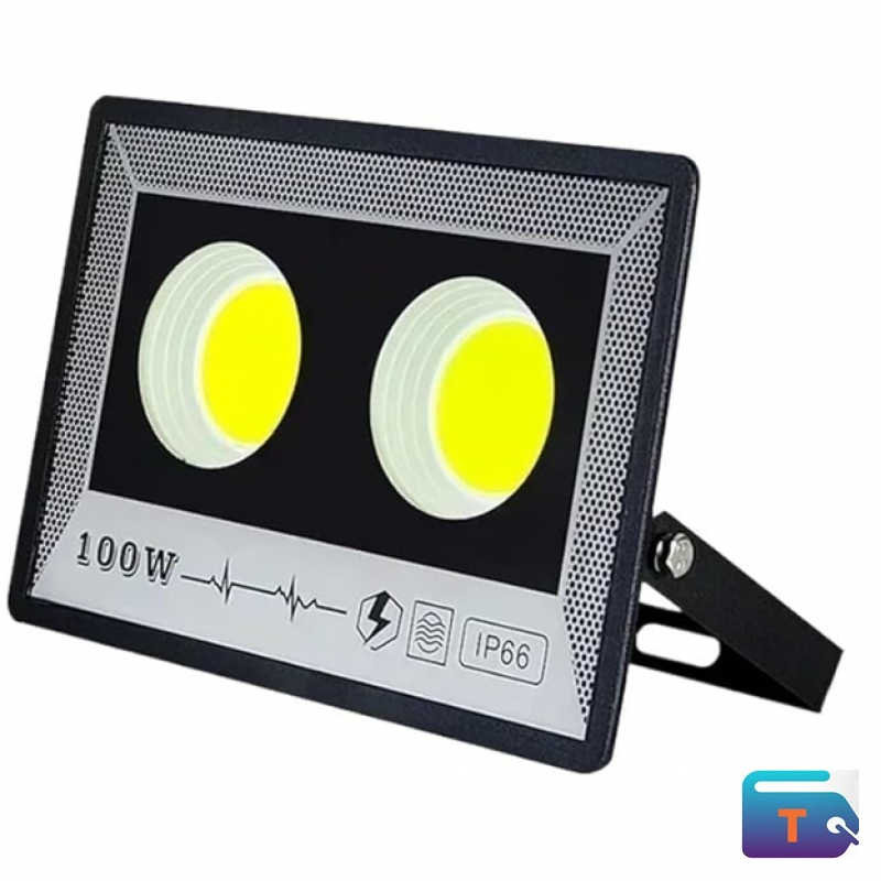 Illuminate large outdoor areas with this 100W LED Floodlight, featuring dual high-brightness LED COB chips for powerful, wide-angle lighting. Ideal for security, yards, driveways, warehouses, parking areas, and building exteriors, it delivers strong illumination with low energy consumption.