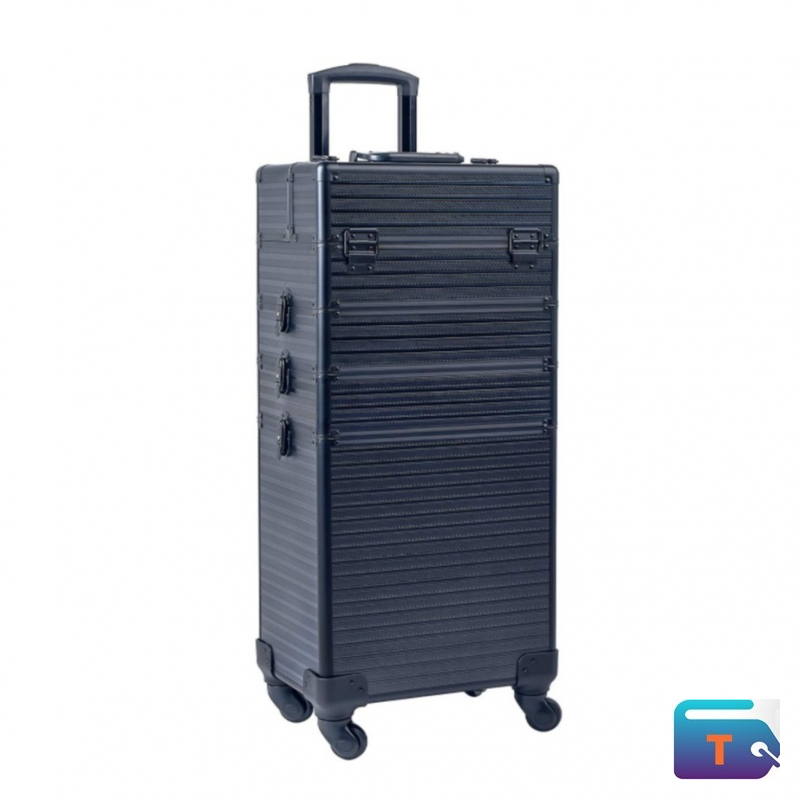 4-in-1 Black Professional Aluminum Rolling Makeup Case