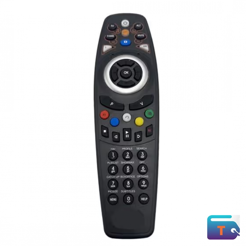 Experience unparalleled control over your satellite, cable, or set-top box with this advanced media remote. Designed for seamless navigation, it features a prominent directional pad and dedicated service buttons for immediate access to your profile, playlists, and video-on-demand services like Showmax and BoxOffice. The remote integrates essential media controls—Play, Pause, Stop, and Record—alongside standard functions like Mute, Volume, and Channel changing. Unique to this design are the contextual Red, Green, Yellow, and Blue function keys and the Alt button, providing deep, flexible control over complex application menus and interactive services. Its ergonomic, contoured shape ensures comfortable handling, making it the perfect command center for your premium digital entertainment system.