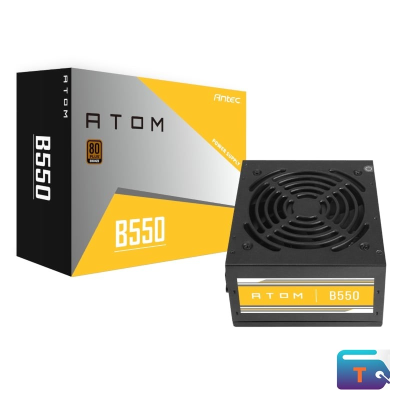 The Antec Atom B550 80PLUS Bronze ATX Power Supply offers great performance to keep your desktop powered all day. It features an output of 550W, 80PLUS® BRONZE Certification, Active Power Factor Correction, CircuitShield Protection, and a 120mm silent fan.