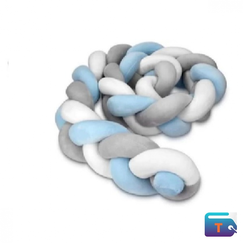This a braided cot bumper, also known as a crib bumper. It is a soft, braided cushion designed to be placed inside a baby's crib or cot.