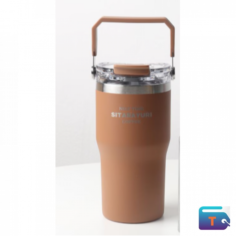 Elevate your on-the-go beverage game with this sleek brown insulated tumbler, crafted for style and performance. Featuring a matte stainless steel body, a secure flip-top lid, and a matching angular handle, it’s built for easy carrying and spill-free sipping. Whether you're commuting, traveling, or working from your favorite café, this tumbler keeps drinks hot or cold while showcasing bold branding with "NICE TIME SITABAYURI CORPSE.” A modern essential for those who appreciate design with function.