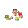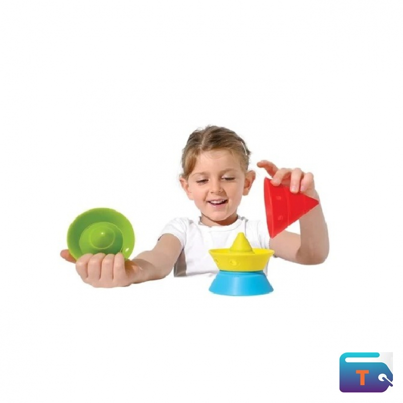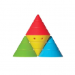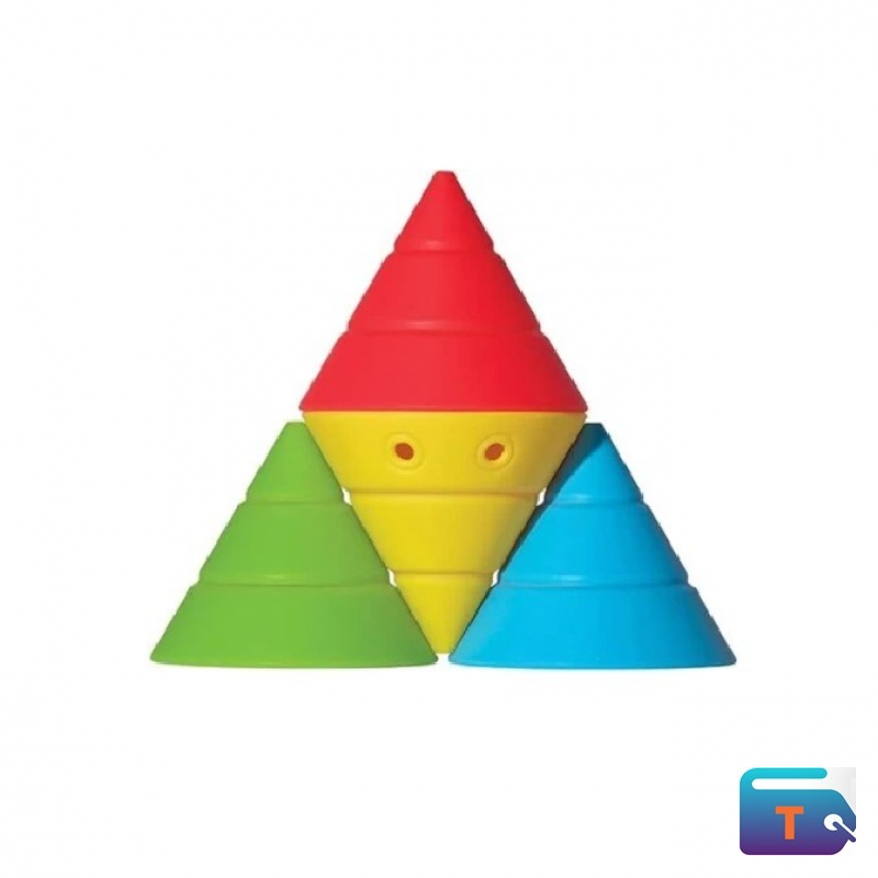 The toy is designed for stacking, nesting, balancing, and building, and is intended to be a versatile construction toy. It helps train visual-spatial ability, hand-eye coordination, and fine motor skills. The material is safe, and the cones do not make much noise when they fall over. The toy is suitable for a variety of play settings, including indoors, outdoors, and water play.