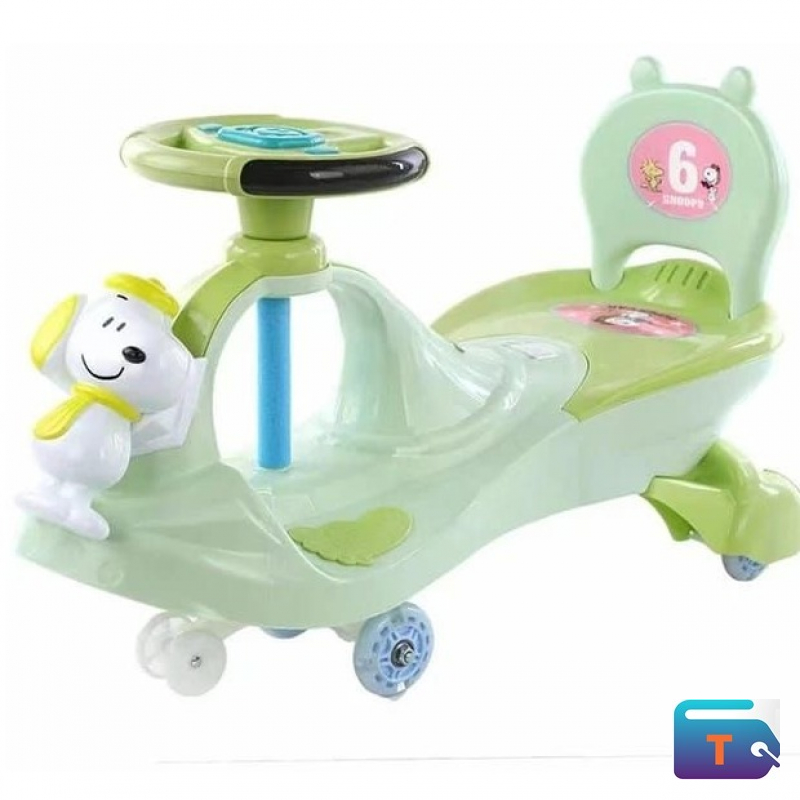 The Cute Swing Car with Pedal (Green) is a toddler ride‑on toy designed to combine the fun of a swing car with the added control of pedals. Its cheerful green finish makes it appealing to children, while the sturdy build ensures safe indoor and outdoor play.