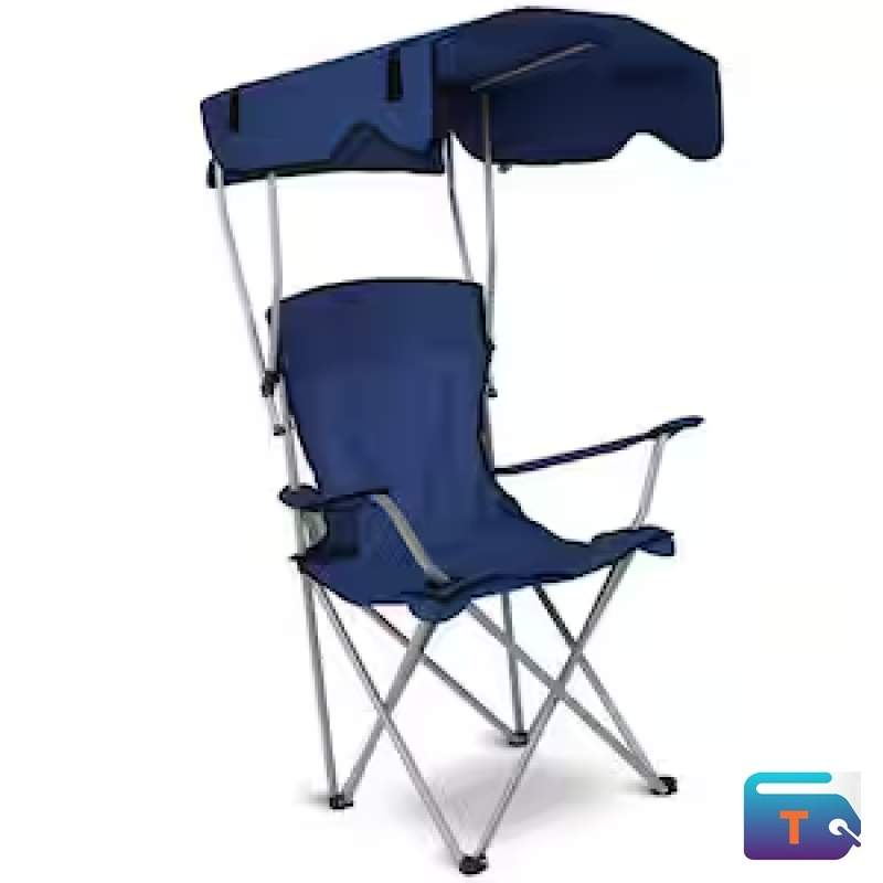 Relax in shaded comfort with this dark blue folding camping chair featuring an integrated canopy for sun protection. Built with a sturdy collapsible frame and breathable fabric seat, it’s ideal for beach outings, camping trips, or outdoor events. The overhead canopy shields you from direct sunlight while the portable design makes setup and transport effortless. Enjoy cool, convenient seating wherever your adventures take you.