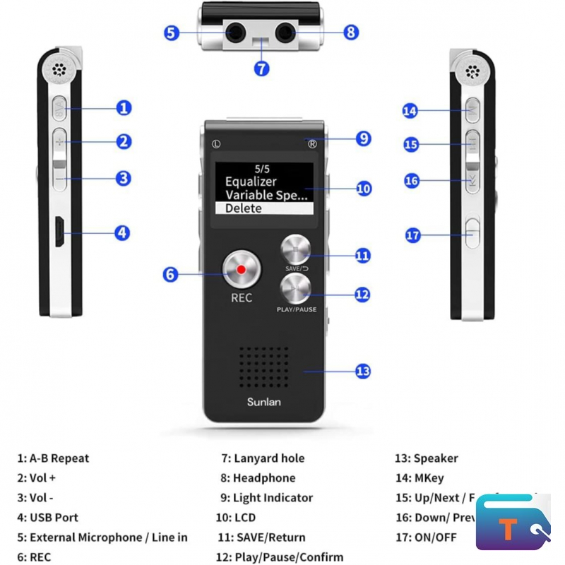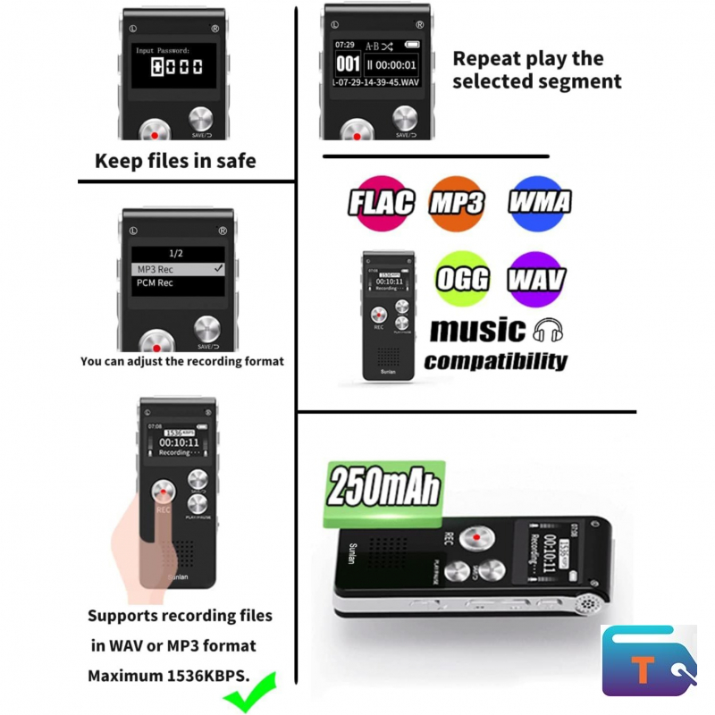 【Simple Operation】- switch on your voice recorder, one button for recording. press the "REC", start the recording, press "STOP", end the recording, press "PLAY”, listen what you just recorded, and then Press A-B, select your important section to repeat. Easy to playback with inner powerful speaker, support external sound speaker playback, let you enjoy superior recording quality.